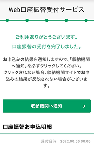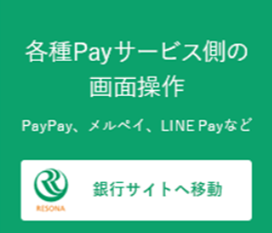 ⑤自動で収納機関サイトに遷移します。 遷移されない場合、以下の「収納機関へ通知」ボタンをクリックしてください。 PayPay、メルペイ、LINE Pay、Bank Payなどの各種Payサービス側の画面に遷移し、埼玉りそなの銀行口座の登録手続きは完了。