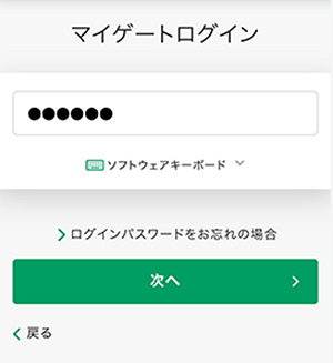 ③ログインパスワードを入力し、「次へ」をクリック。その後、画面の案内に沿って進んでください。