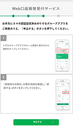 ※りそなグループアプリで取引を承認後、本画面に戻りお手続きを完了させてください。