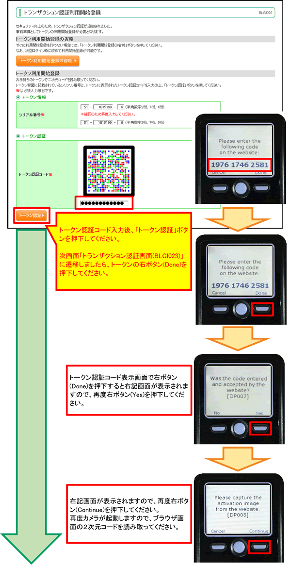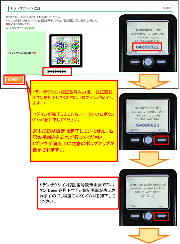 ログイン完了後、トークン右ボタンの2回の押下(「Done」および「Yes」の2回)は必ず行ってください。