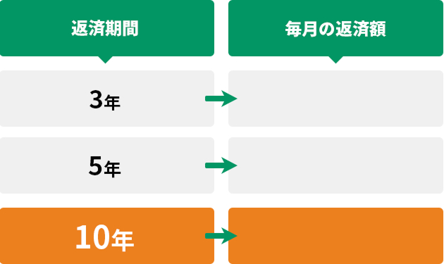 ※お借入れ条件によっては返済額が異なる場合もありますので、あらかじめご了承ください。