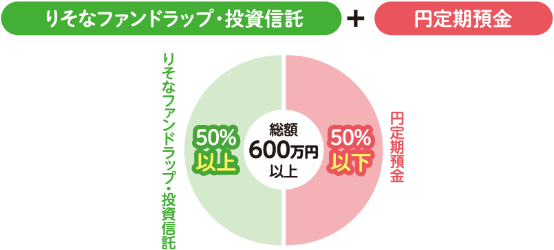 | ご利用条件 | ●投資信託またはりそなファンドラップ(50%以上)と円定期預金(50%以下)を同時にお申込み |