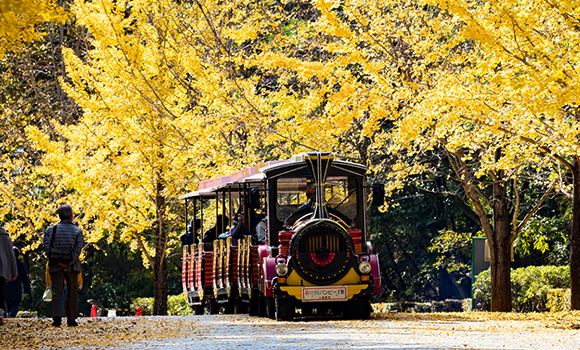 秩父ミューズパークは秩父市に位置する広大な自然公園で、秋になると山々と園内の木々が鮮やかに色づきます。サイクリングの貸し出しや、パーク内を走るスカイトレインなどのさまざまアトラクションから、レストランやショップなどもあり、楽しみながら美しい風景を満喫できます。ちびっこ広場や遊具も併設されているため、子連れでの来園もオススメ。また、公園のシンボルである展望台に上れば、晴天時には秩父の市街地の景色も一望できます。