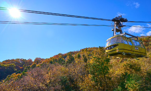 標高約497mの低山で、秋の紅葉シーズンには多くの人々が訪れます。山頂へのロープウェイに乗れば、眼下の美しい紅葉と周囲の自然風景を一望できます。ハイキングコースも整備されており、体力に合わせて気軽に自然を楽しめるのも魅力のひとつ。晴れた日は山頂や中腹からの眺望が絶景です。また、歴史ある神社も近くにあり、地元の伝統文化に触れることもできます。