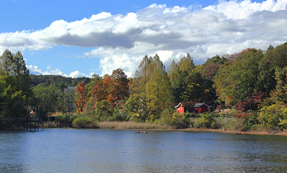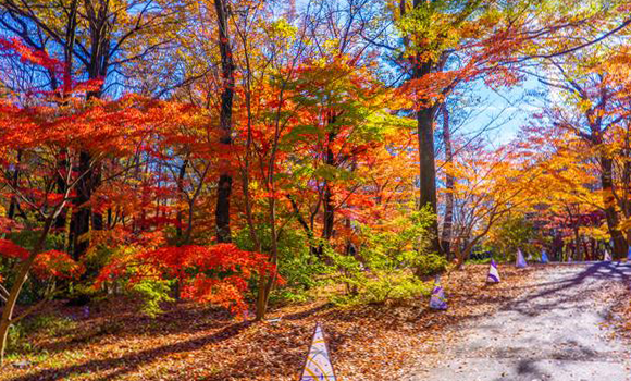 「北欧」と「ムーミンの世界観」を体験できる観光施設で、秋になると園内の自然が美しい紅葉に彩られます。湖畔や森の中に赤や黄色の葉が広がり、ムーミンバレーパークの建物やオブジェと調和した独特の風景が楽しめます。家族連れやカップルの観光地としても人気で、子ども向けの遊び場や飲食店が充実しています。